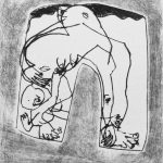 Since the birth of her son, Sophia’s work has explored how identity is forged through family experience. She often makes drawings on the floor with her son present and his energy drives the process. This dynamic developed thanks to Procreate Project’s Mother House, where she was invited to work alongside her son in a shared studio space. She is interested in the gestures that are exchanged between mother and child and the deeper psychological impression (and disturbance) that a child makes on an adult and how this is managed and returned back to the child. Her line works to express the immediacy of a moment and rising emotion, and to capture these tangled states before they are lost. Previous works explored landscape and conservation. She studied Architecture at The Bartlett, UCL and has an MA in Printmaking from the Royal College of Art, London.